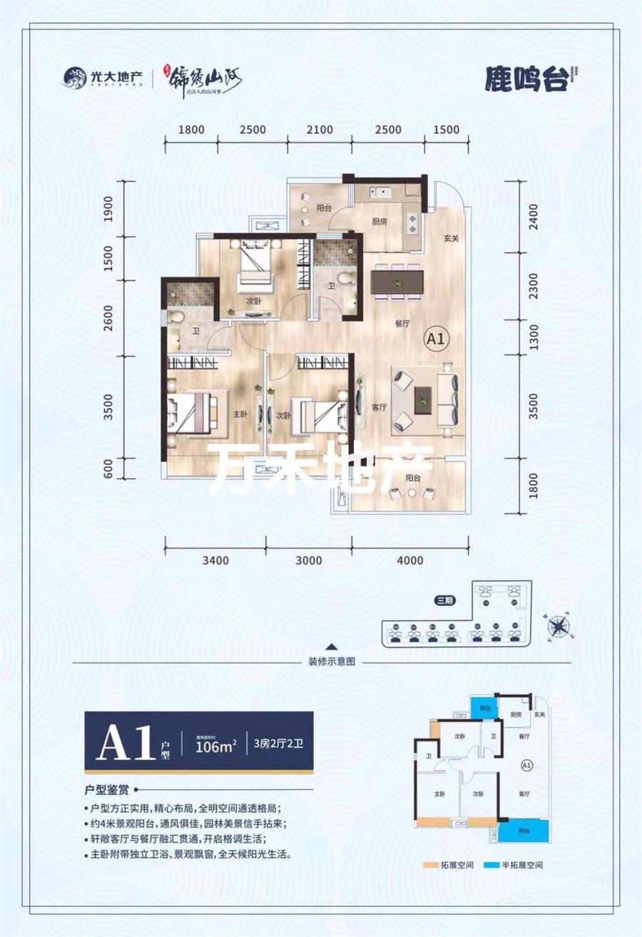 湘桂盛天3房2厅(可改4房),单价4300/平,首付18万,送入户花园